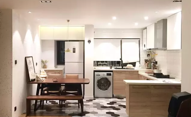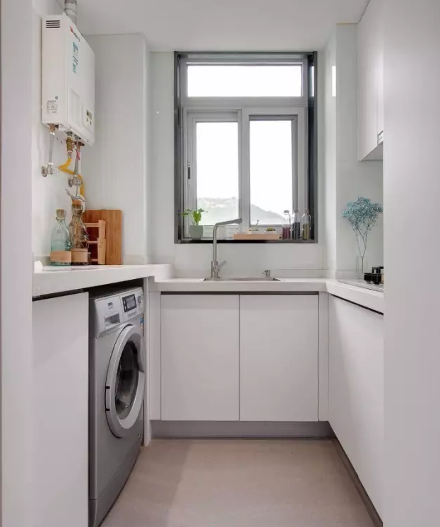 如果你家有兩個(gè)廚房或者喜歡吃較西式食物,洗衣機(jī)放廚房也是個(gè)不錯(cuò)的選擇。
