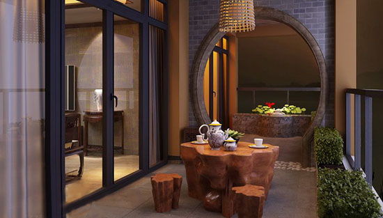 茶館改造并不需要故意的裝修,用玻璃窗把陽臺關(guān)閉后,在墻面貼上文化石,或者是仿青石板的瓷磚,天花板用雕花木線條勾邊,這些元素都定格了茶館的中式意蘊。茶館的資料以竹、木、藤、麻、布等。竹給人清雅脫俗之感,木給人以溫暖結(jié)壯之感,藤、麻給人以天然淳樸之感,而布的細膩漫長更是無物可比。
