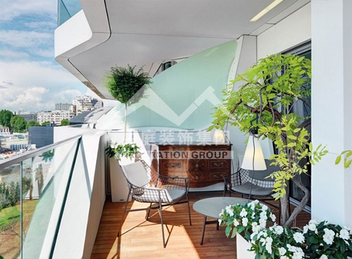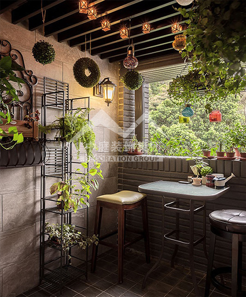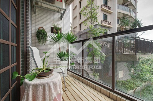 如果是陽臺面積較大又位于頂樓,應(yīng)該屬于“露臺”??稍陉柵_上加透明的弧形采光頂,就可使陽臺當作房間使用。陽光通過采光板灑向用文化石做的墻壁,以及青石板鋪成的地面,而且也照亮了“人”字型的鵝卵石小徑……這些園林造景手法,用在陽臺上,會給人濃濃的休閑氣息。