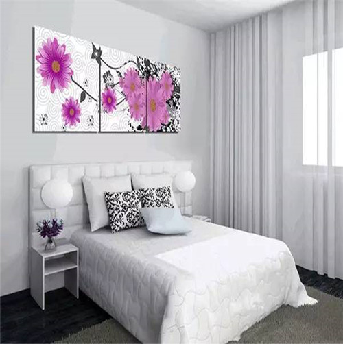 臥室是個人生活的私密空間,也是休息睡眠場所。臥室要營造溫馨浪漫、舒適恬靜的氛圍,掛畫以暖色為主色調(diào)??梢赃x擇人物人體、花卉等題材掛畫,當(dāng)然也可以掛自己的肖像畫或結(jié)婚照,以增進感情。