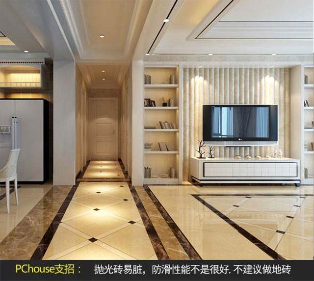 PS:如果使用了拋光磚,平時家中盡量開小燈,還要避免燈光直射或通過反射影響到眼睛;由于白色和金屬色瓷磚反光較為強(qiáng)烈,不適合大面積在居室使用。