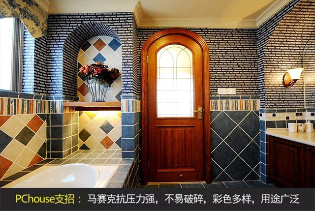 馬賽克瓷磚是地面和墻面裝飾使用較多的裝飾建材之一。馬賽克具有精致小巧、色澤多樣,可用來拼出各種美觀的圖案,對于墻面和地面的裝飾效果遠(yuǎn)遠(yuǎn)的超過了普通的墻磚和地磚。馬賽克種類繁多,規(guī)格多,薄而小,質(zhì)地堅硬,耐酸、耐堿、耐磨、不滲水,抗壓力強(qiáng),不易破碎,彩色多樣,用途廣泛。