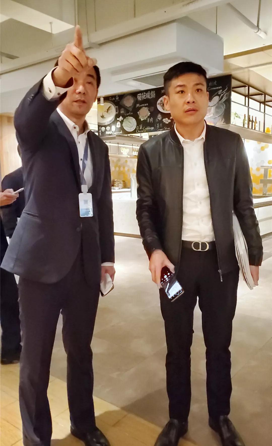 亞廈后勤服務(wù)中心總經(jīng)理向丁胡總裁介紹亞廈的員工食堂以及企業(yè)員工福利待遇的情況