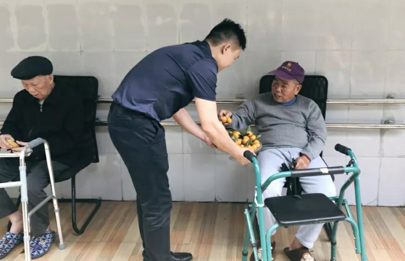 ▲集團副總裁湯炬峰(圖中)帶隊到達敬老院