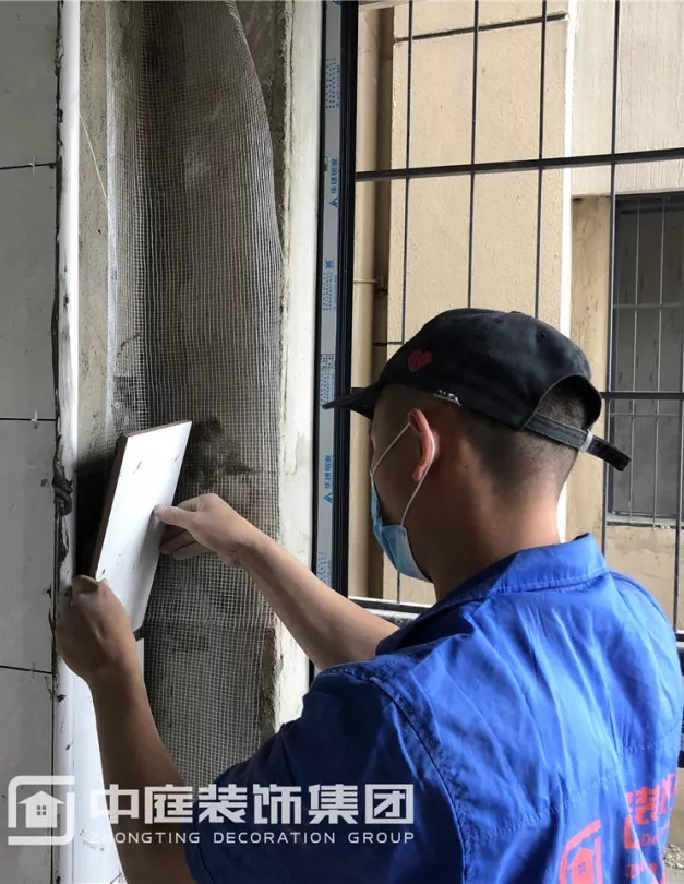 師傅貼磚排版考慮細(xì)心周到,確保窗口上沿用原始邊碰角整齊劃一。