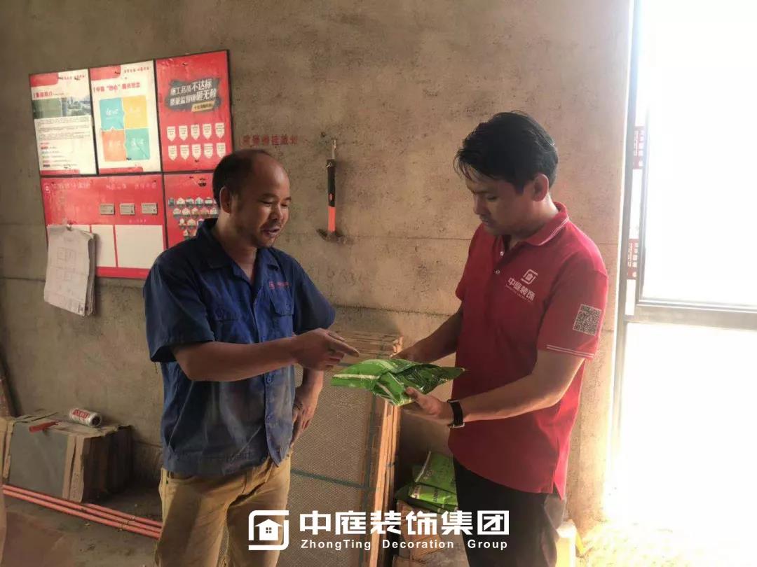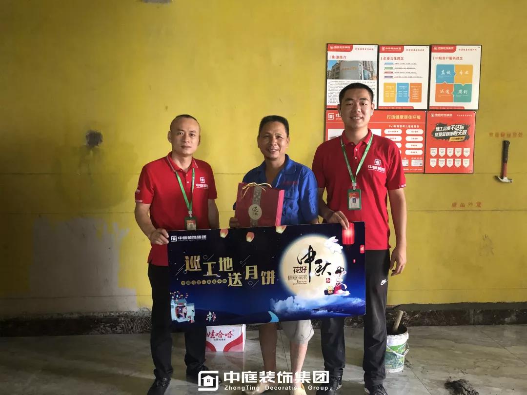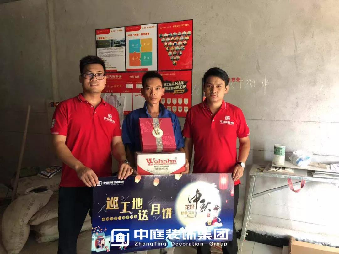 工程質(zhì)量的好壞是檢驗(yàn)一個(gè)裝修公司實(shí)力的標(biāo)準(zhǔn)之一,中庭裝飾集團(tuán)一直把提升工地質(zhì)量作為首要工作,所有施工工地均是高標(biāo)準(zhǔn),嚴(yán)要求,在工程質(zhì)量上始終嚴(yán)格把關(guān),只為打造更多幸福品質(zhì)家。高品質(zhì)工地的輸出也離不開奮戰(zhàn)在一線的匠人們的付出,在中秋來(lái)臨之際,集團(tuán)特地為工人師傅們送去了關(guān)懷。
