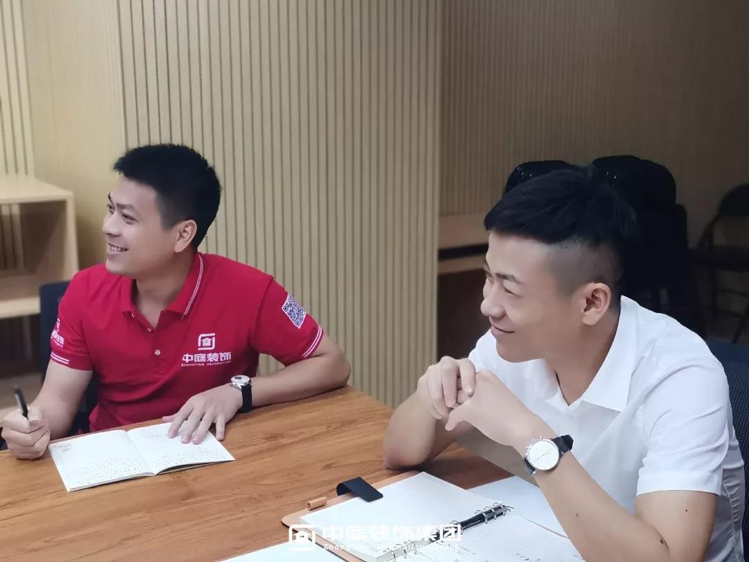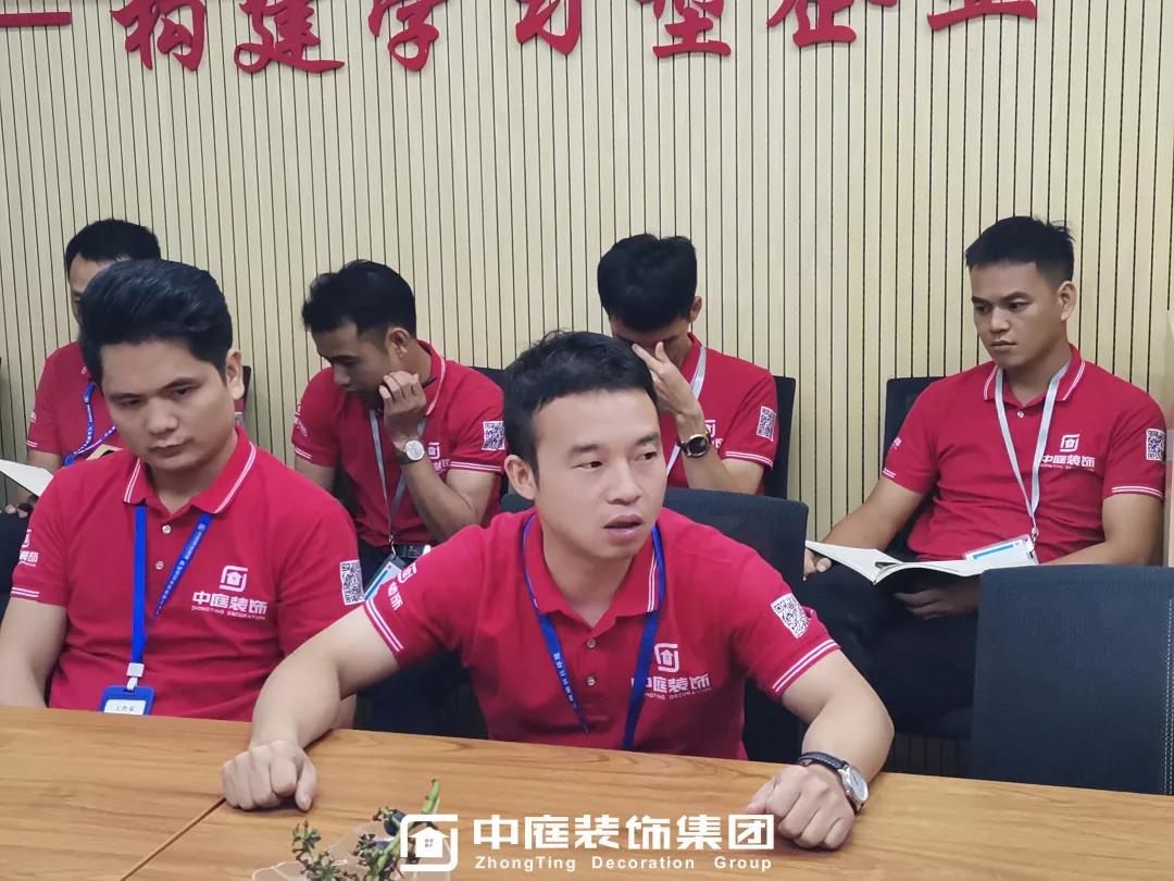 ▲總裁丁總現(xiàn)場(chǎng)與工人師傅詳細(xì)講解工藝標(biāo)準(zhǔn)
