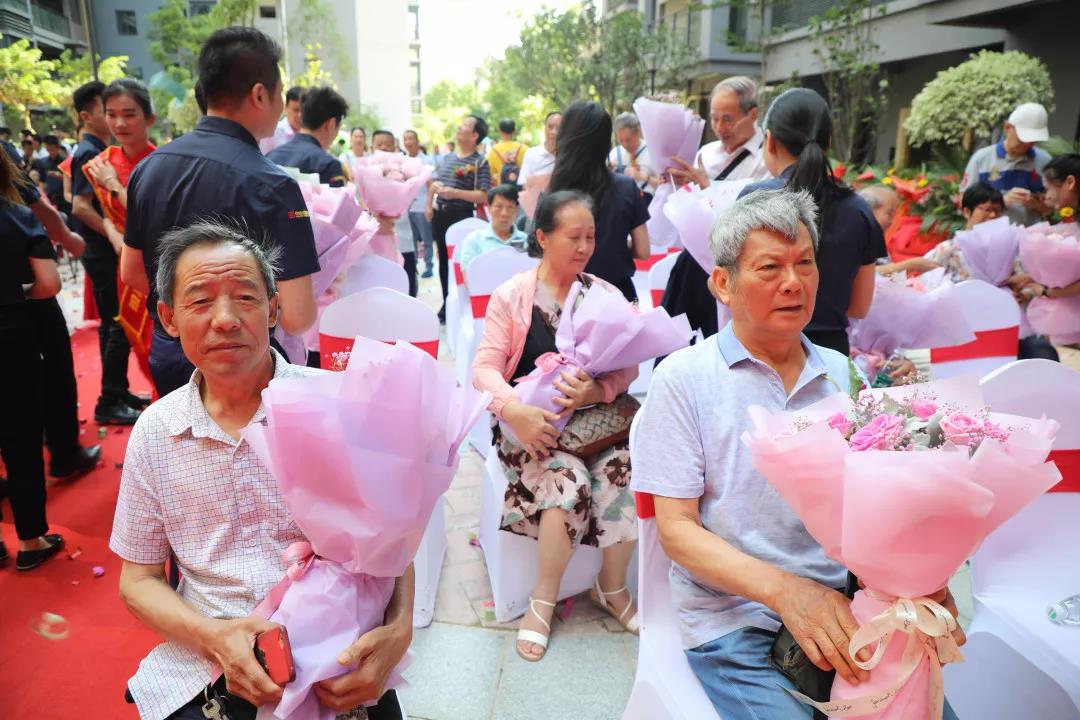 ▲同時,臺下的中庭家人們?yōu)闃I(yè)主獻上手捧花,并送上誠摯的祝福。