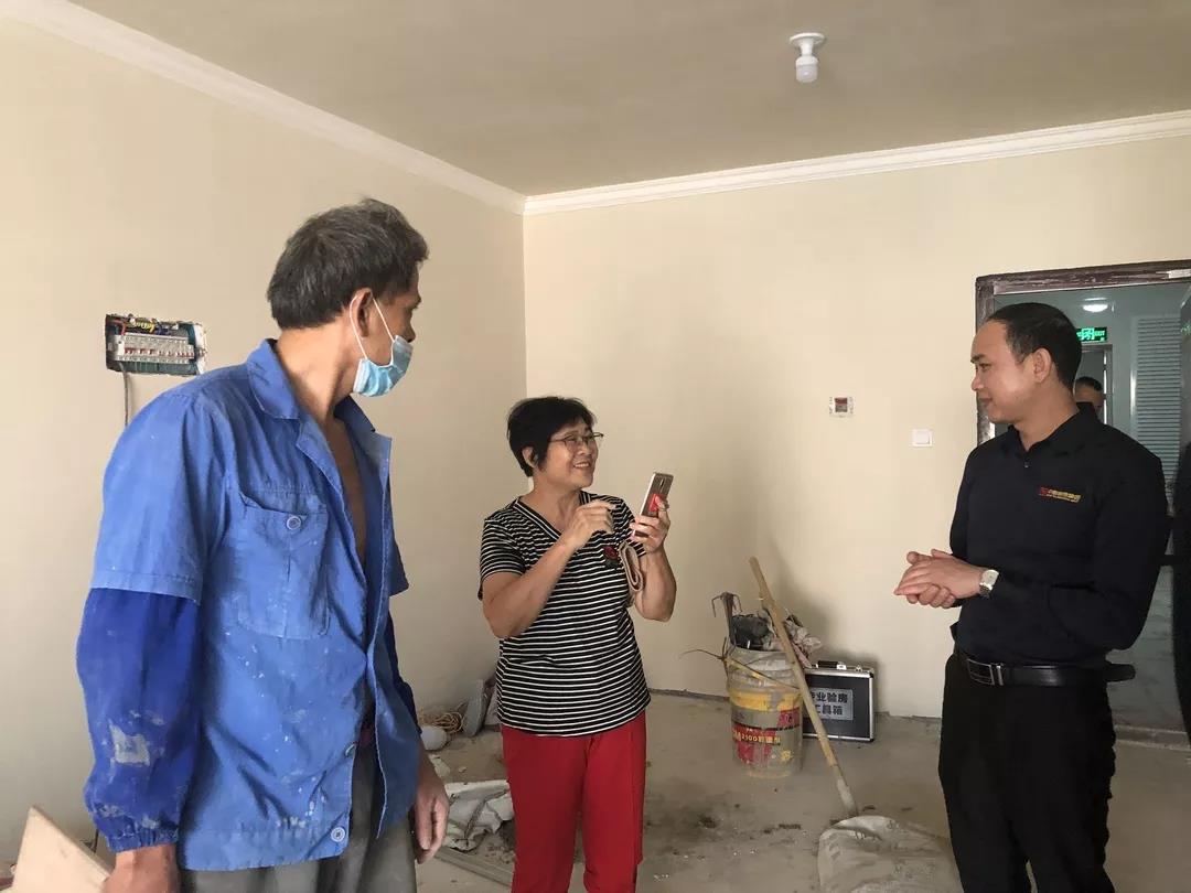 ▲吳總現(xiàn)場和業(yè)主了解裝修滿意度,業(yè)主表示非常滿意