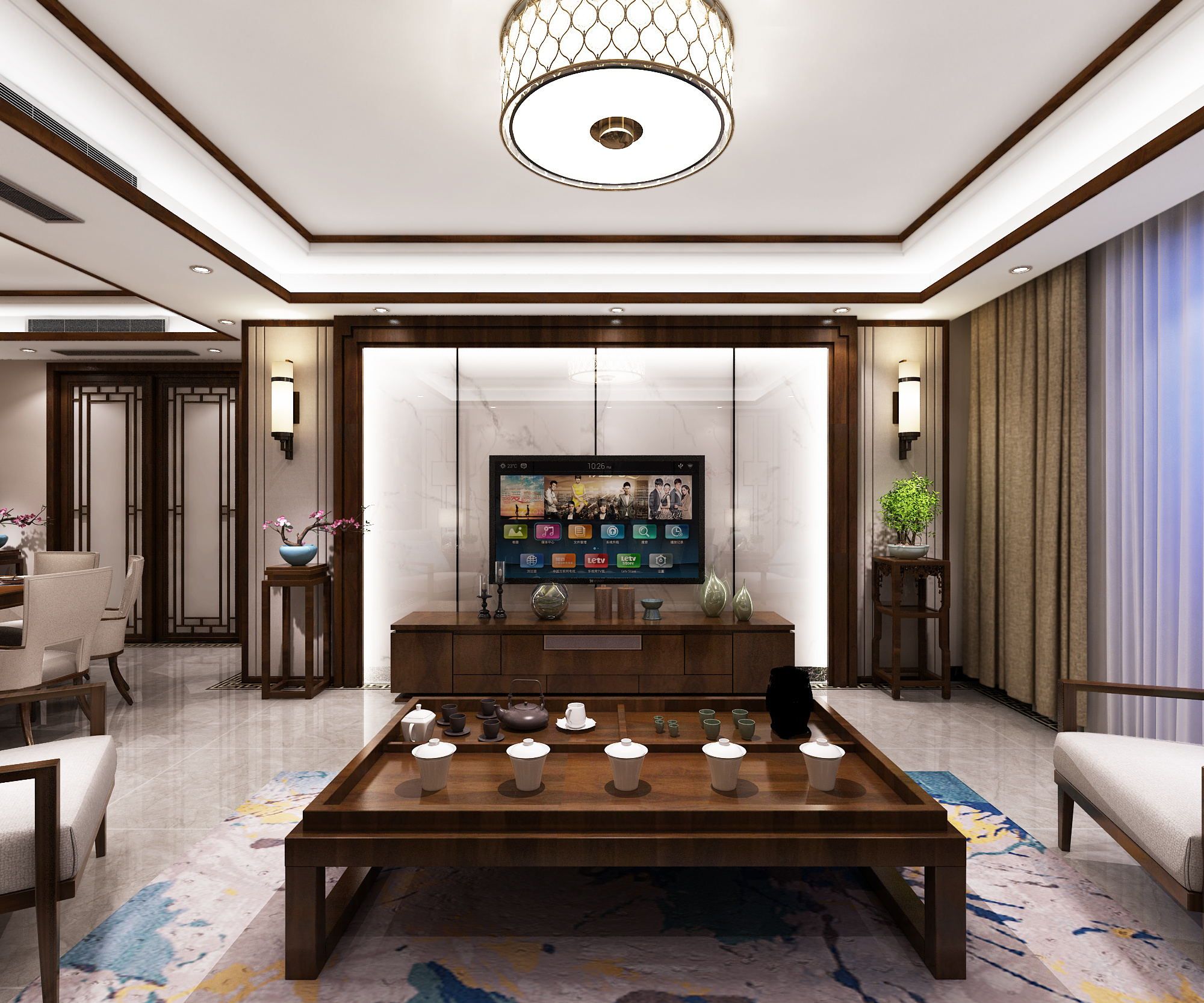 施工面積:80-120㎡| 設(shè)計(jì)風(fēng)格:新中式風(fēng)格
