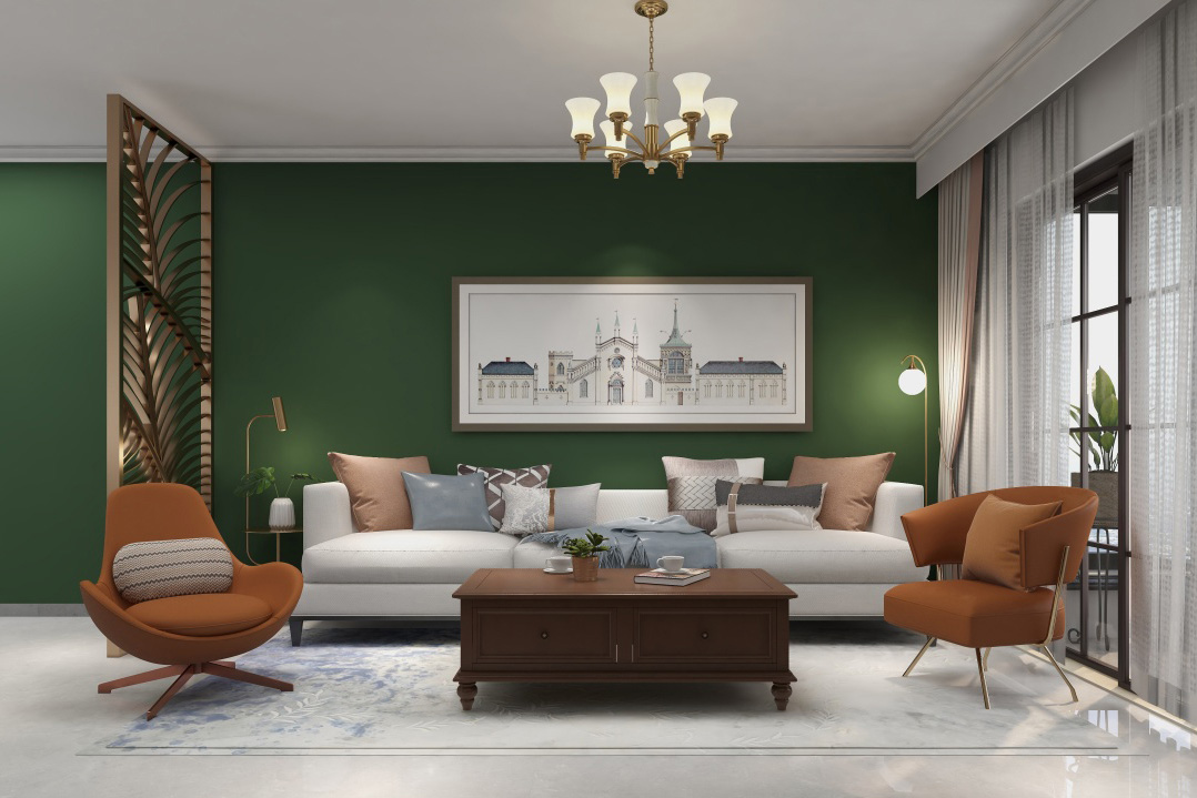 整體色調(diào)以奶咖色為主,加以綠色點(diǎn)綴,大膽的撞色使整體空間顯得活躍又多了幾分復(fù)古韻味。在家具搭配上多為木制家具,木制家具自然溫潤(rùn)的特性讓人感覺(jué)舒適放松,設(shè)計(jì)簡(jiǎn)潔卻不失特色。