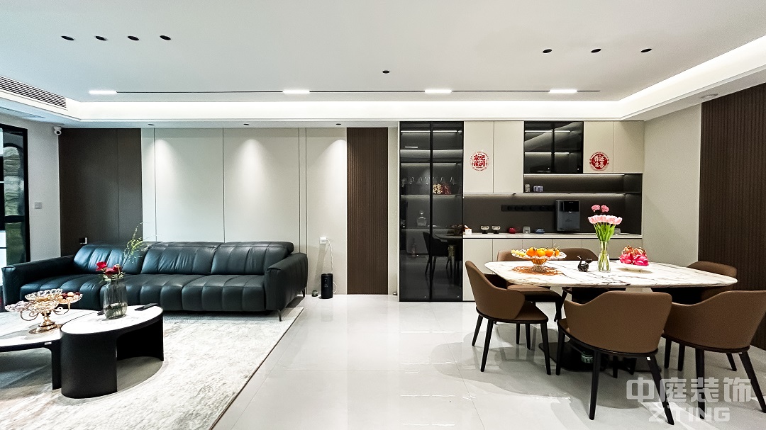 這是一套130平的舊改案例。黑白灰的色調搭配,簡潔而純粹,沒有過多的繁雜色彩,卻能營造出一種高級感。